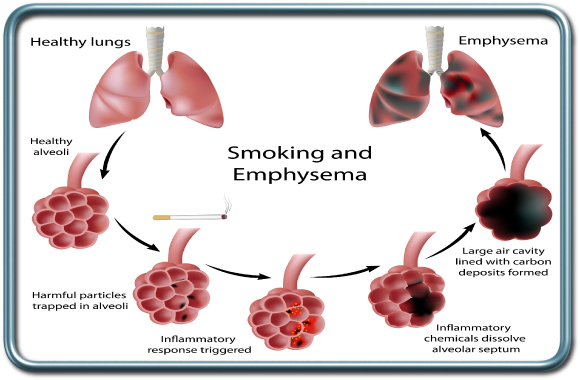 מחלת ריאה חסימתית כרונית נגרמת לרוב מחשיפה לעישון או מזהמים. מדובר במחלה הפוגעת בדרכי האויר וברקמה האלסטית הריאתית ומתבטאת בכיח רב, קוצר נשימה במאמץ ואף במנוחה, וצפצופים.